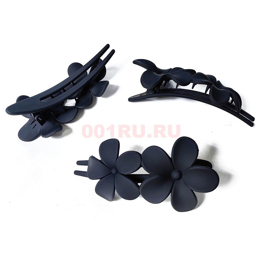 Заколка краб черная (RV-6019) два цветка 12 шт/упаковка
