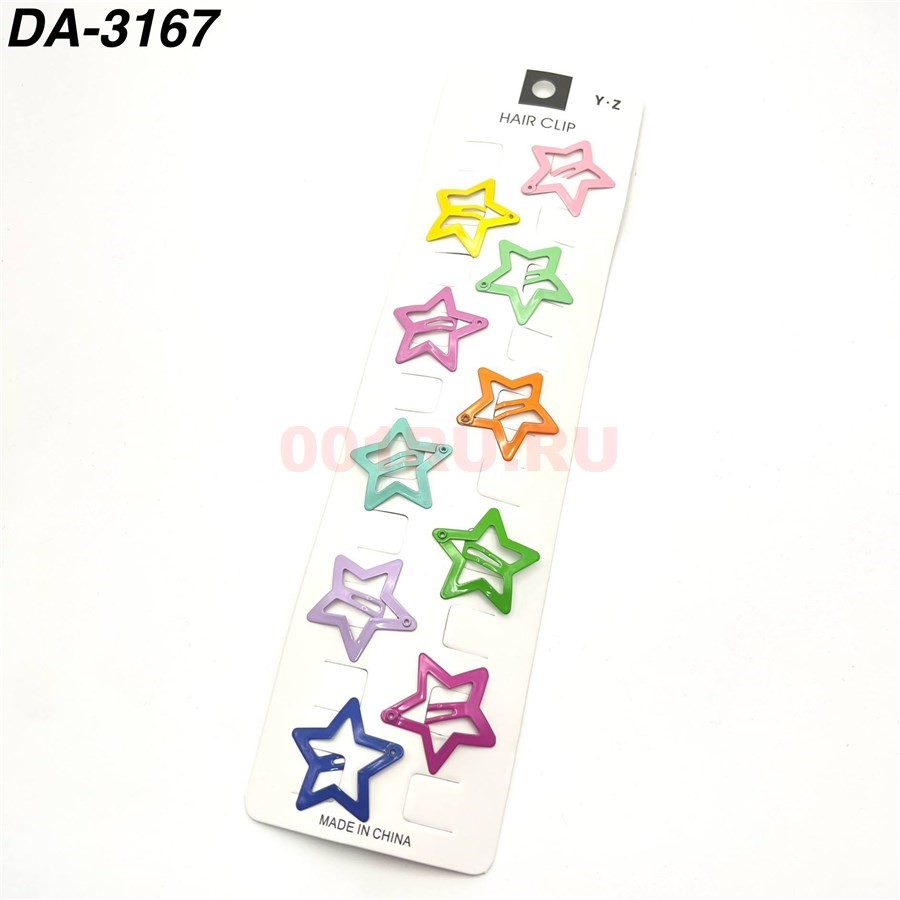 Заколка металлическая клик-клак (DA-3167) цветная звезда 3 см 10 шт/лист