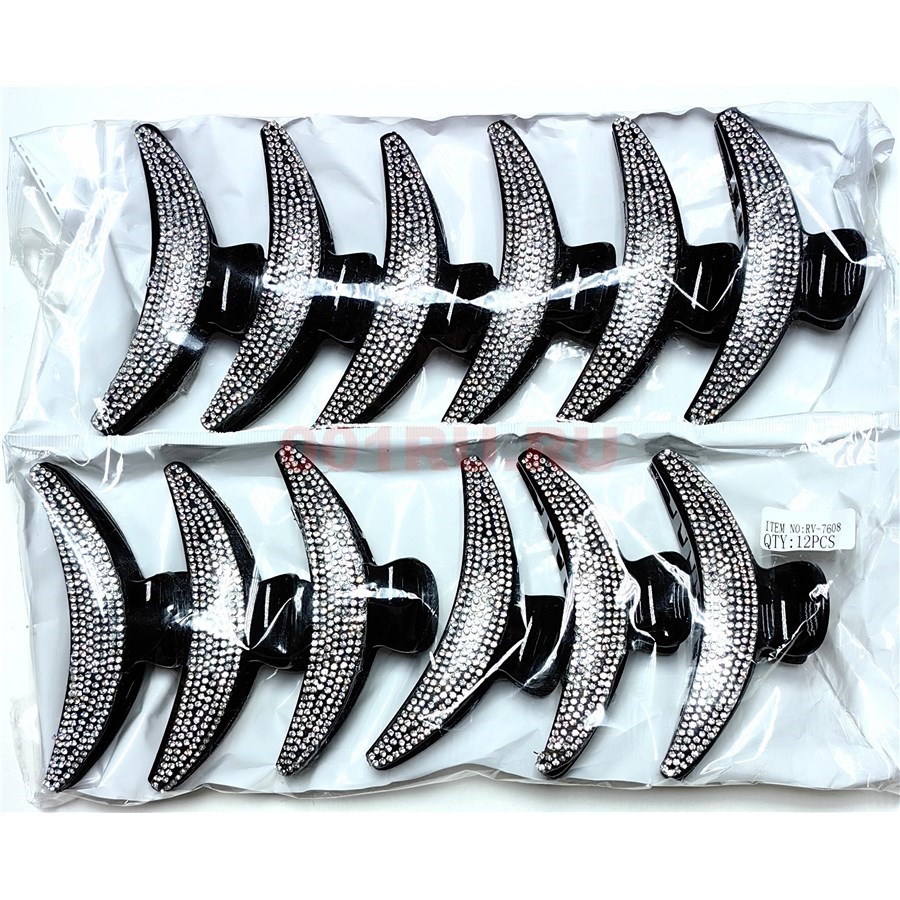 Заколка (RV-7608) краб со стразами 12 шт/упаковка