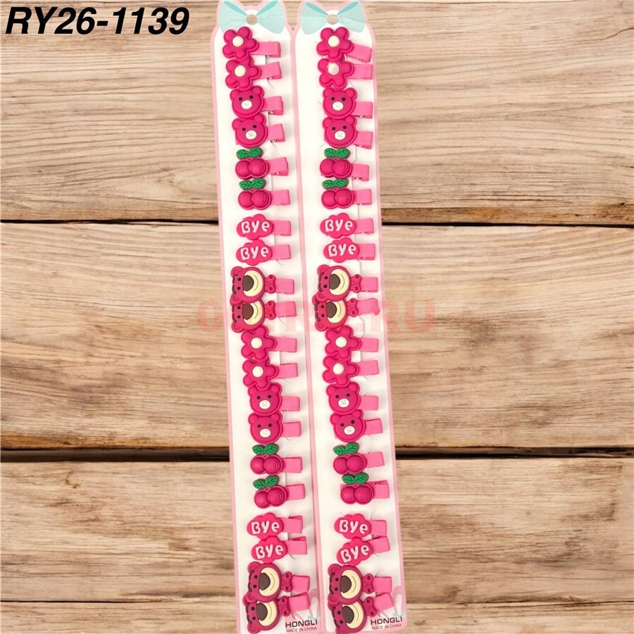 Заколки на ленте детские (RY26-1139) розовые в ассортименте 100 пар/упаковка