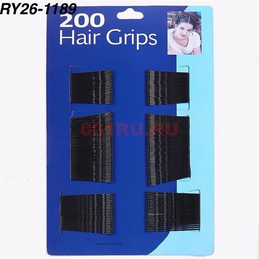 Заколки невидимки для волос (RY26-1189) черные металлические 12 листов/упаковка (200 шт/лист)