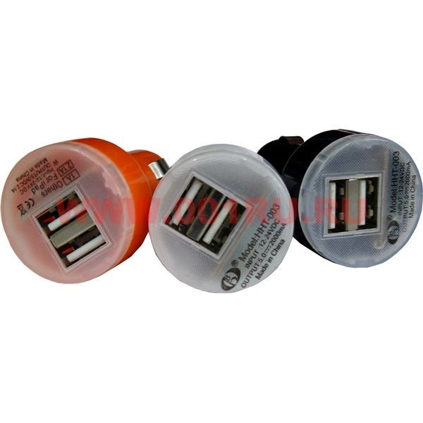 Зарядка универсальная в машину 2 порта 2 ампера цвета в ассортименте