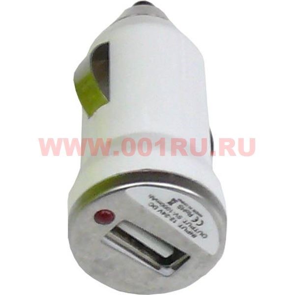 Зарядка универсальная в машину малая 1 порт 1 ампер цвет белый