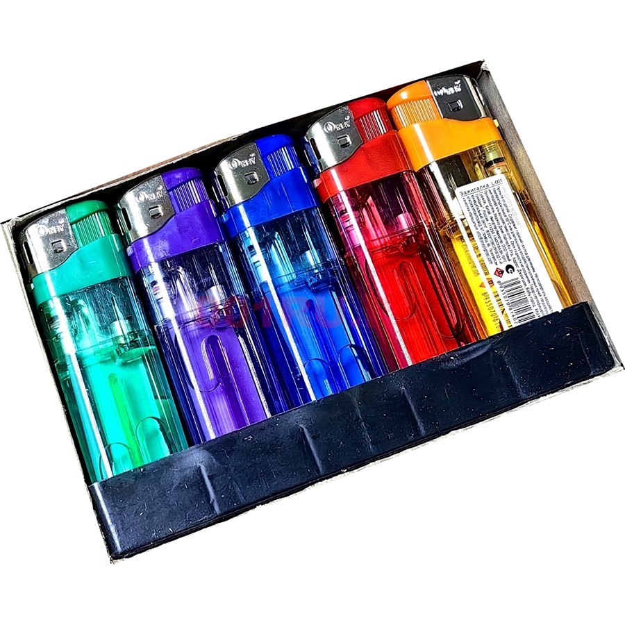 Зажигалка газовая пьезо с кнопкой прозрачная 50 шт/упаковка