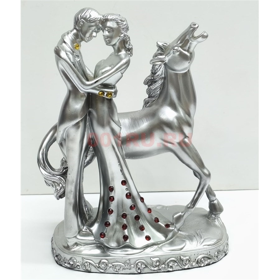 Жених и невеста с лошадью (NS-0899) из полистоуна 15 см высота